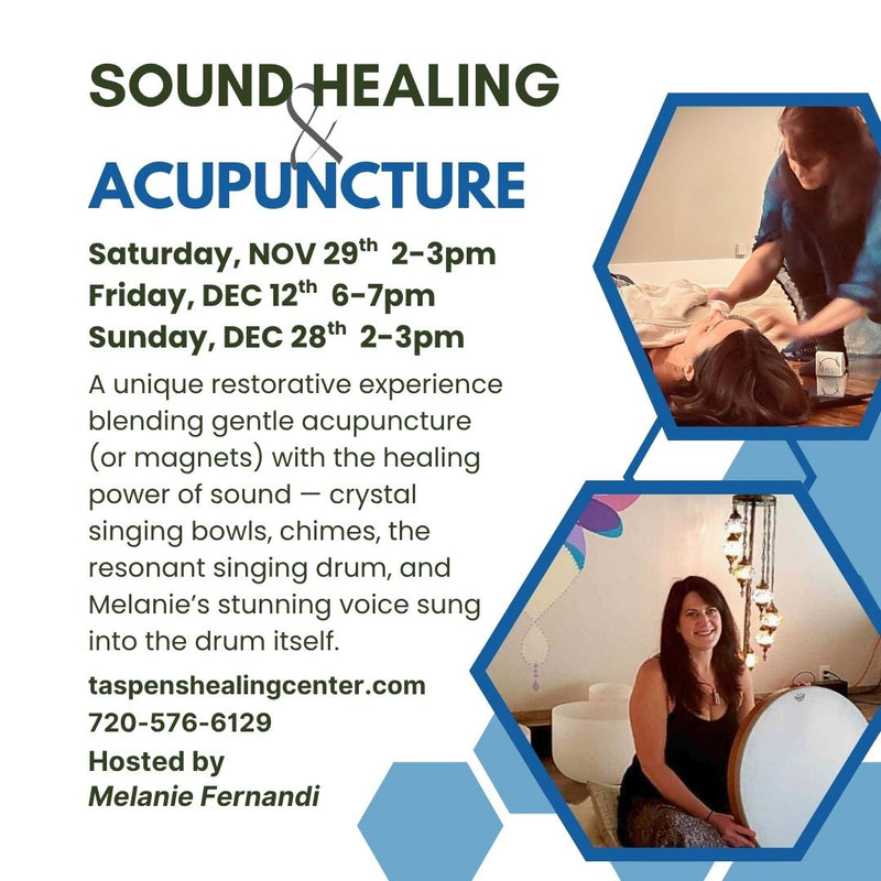 Melanie is back in Colorado and excited to share her one-of-a-kind offering. As both an experienced acupuncturist and a gifted musician (singer and guitar player), she weaves together ancient healing practices with the transformative power of sound.